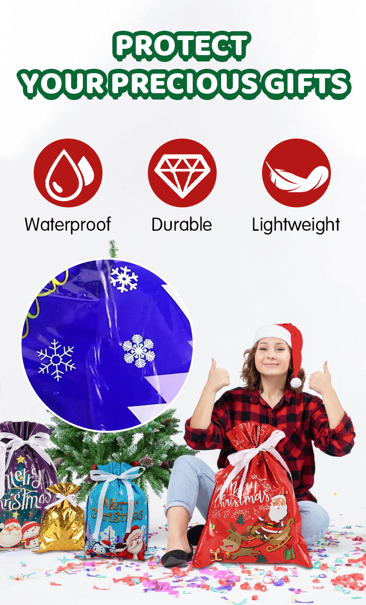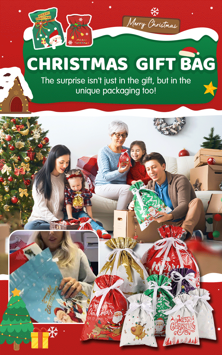 order to make you easy to open and fasten the gift bags, our Christmas gift bags have a on the opening mouth, just put the gift into the bags and fasten it, making it easy to close and open, protecting inner items and avoiding things missing