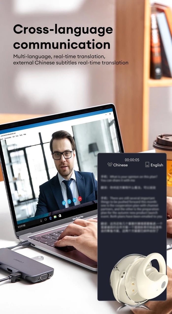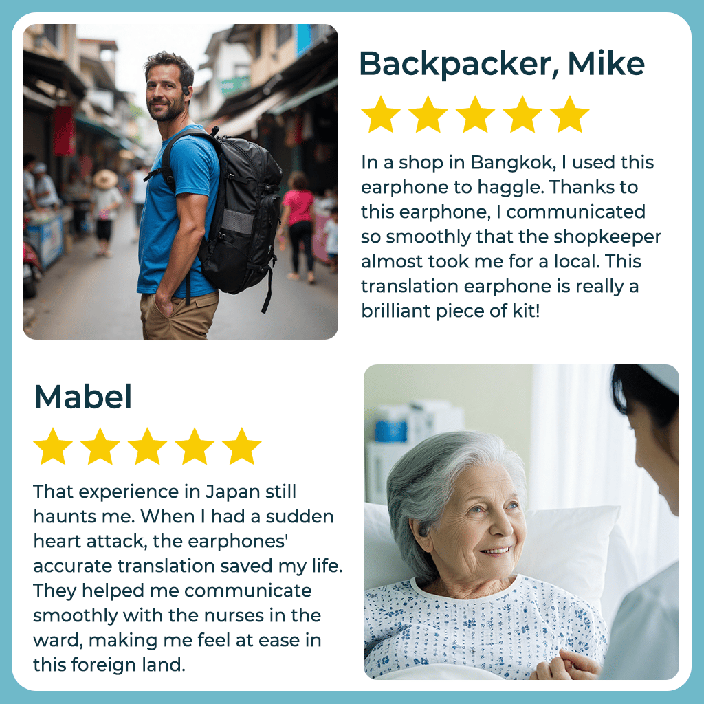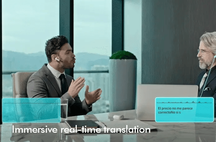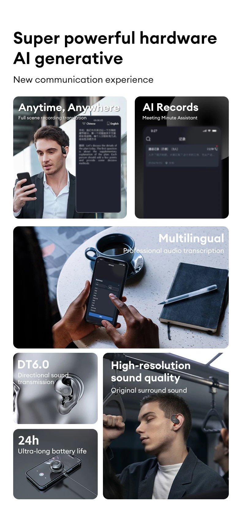 Our earbuds allow you toeasily translate & communicate with others in real-time by simply giving one earbud to a partner, it will translate the conversation between you.